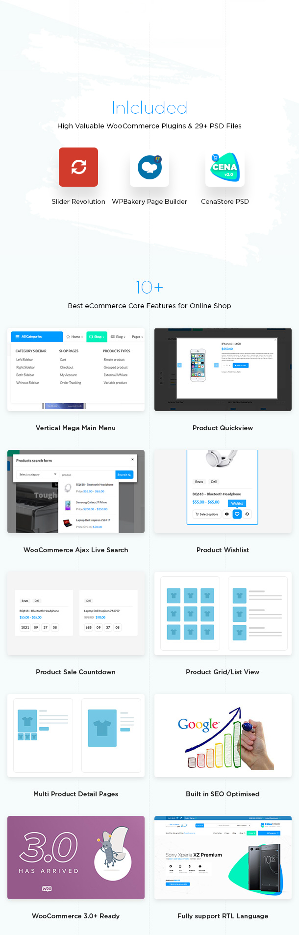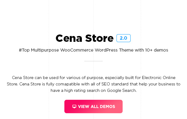 Cena Store is high quality and smart design that comes with different 10+ homepages will give you a large of choices. You’ll be easily to find the best for your purpose without spending too much time.